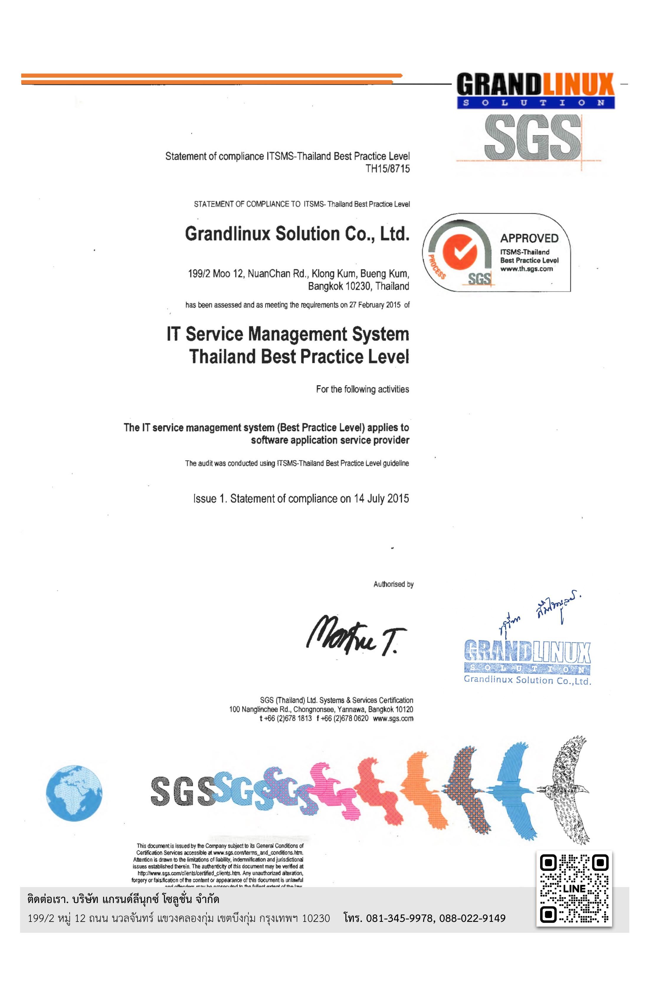 ด้วยประสบการณ์กว่า 24 ปี Grand Linux Solution ได้รับการรับรองมาตรฐานและรางวัลระดับประเทศมากมาย